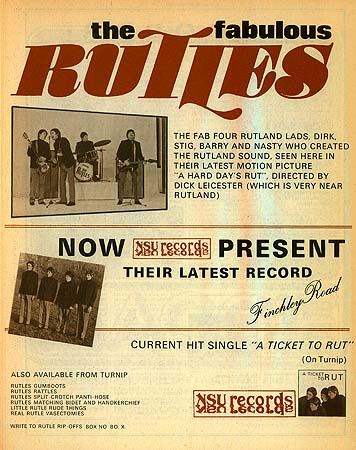 The original Rutles - A full page ad from Rutland Stone Magazine (The Rutland Dirty Weekend Book ©Eric Idle 1976)